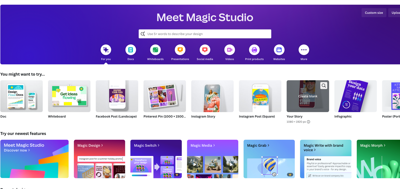 Canva will also send some tutorials and tips in your email that will give you some idea about how the app works. Once you get access to your Canva account, the dashboard will appear on your screen.