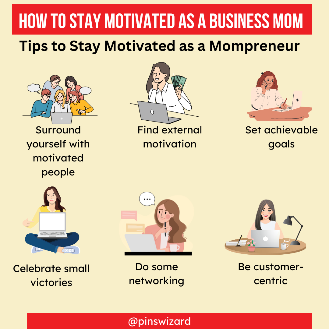 One of the ways to stay motivated is to expand your business network. Connecting to employees, vendors, clients, and other mompreneurs is vital for building a successful business. So, you can attend networking events as they give you the opportunity to connect with likeminded individuals, promote your business, woo new clients, find potential business partners, and learn the latest strategies to achieve specific business goals.