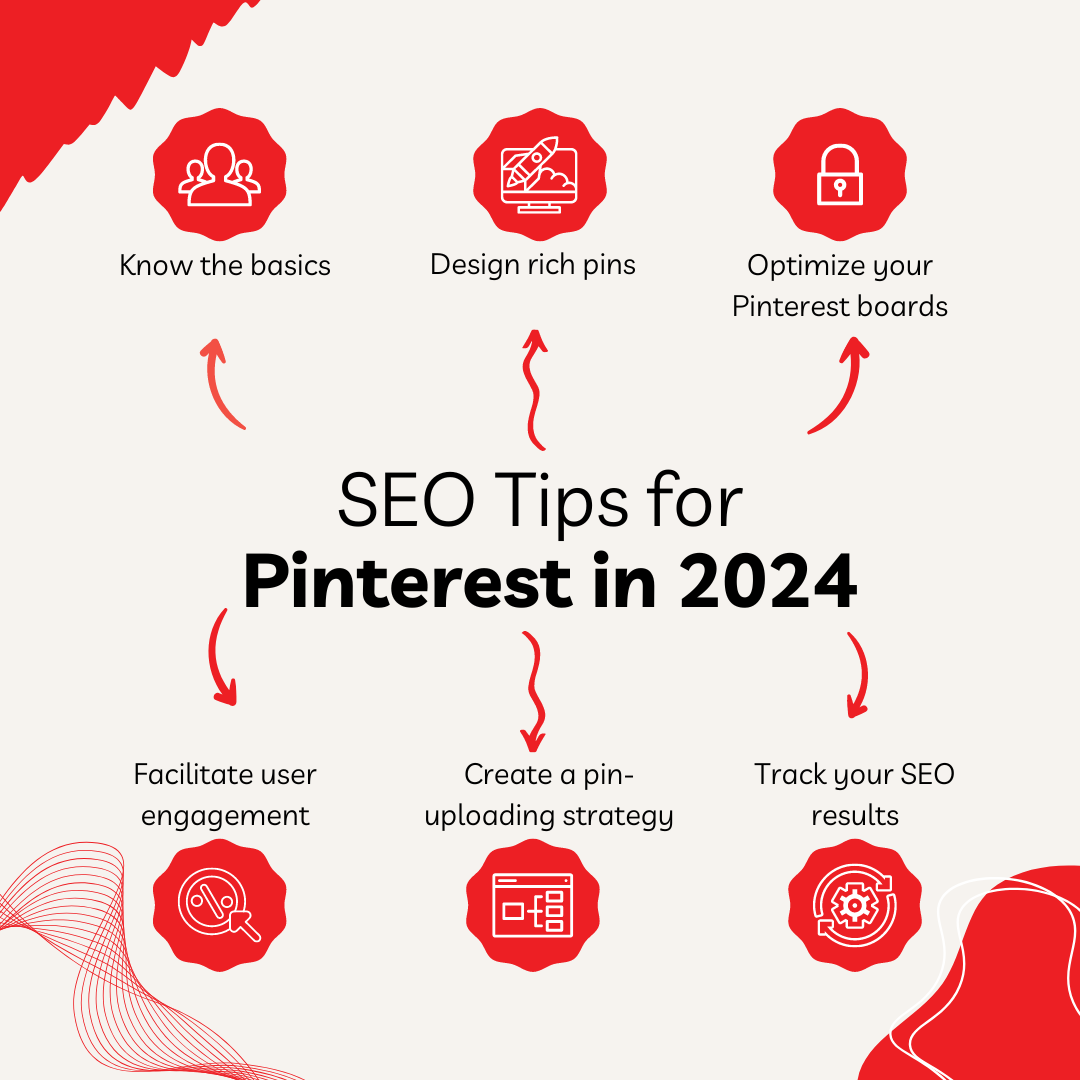 Want to use Pinterest for business? To harness the power of Pinterest SEO, optimizing the profile, keeping boards organized, uploading rich pins, and conducting keyword research are some best practices.