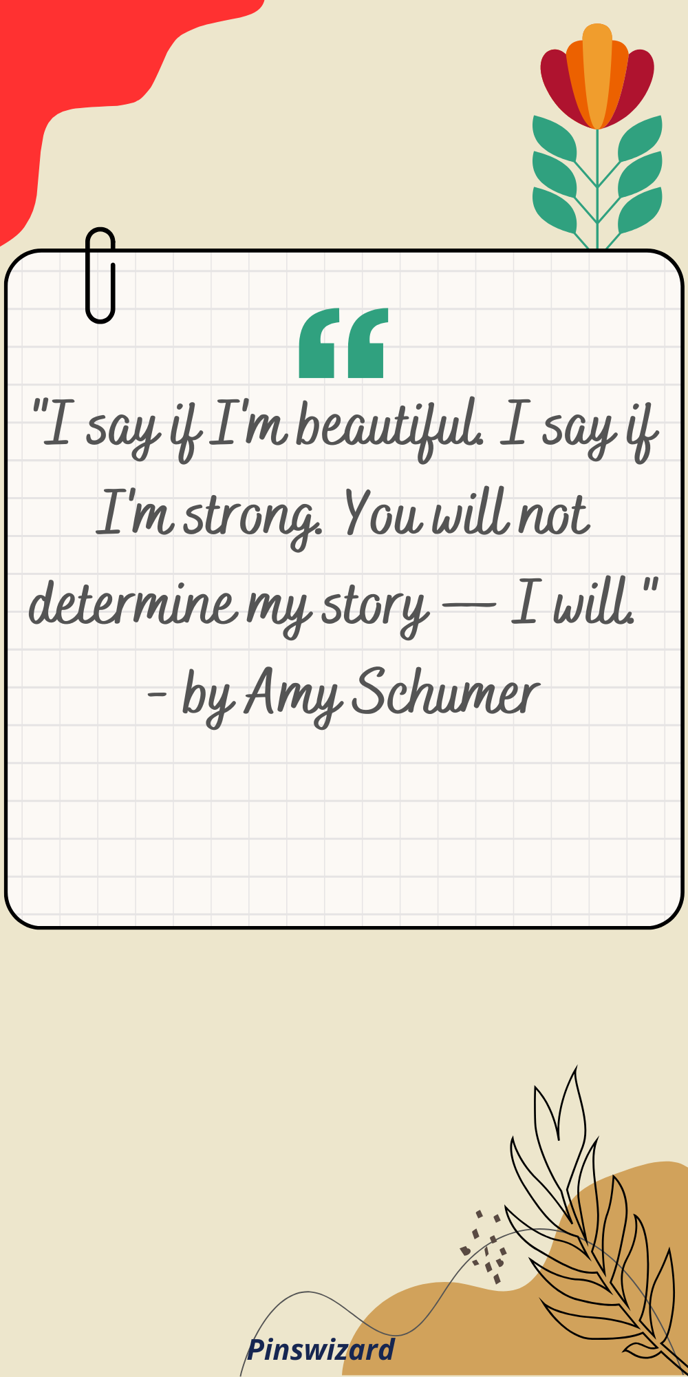 "I say if I'm beautiful. I say if I'm strong. You will not determine my story — I will." - by Amy Schumer