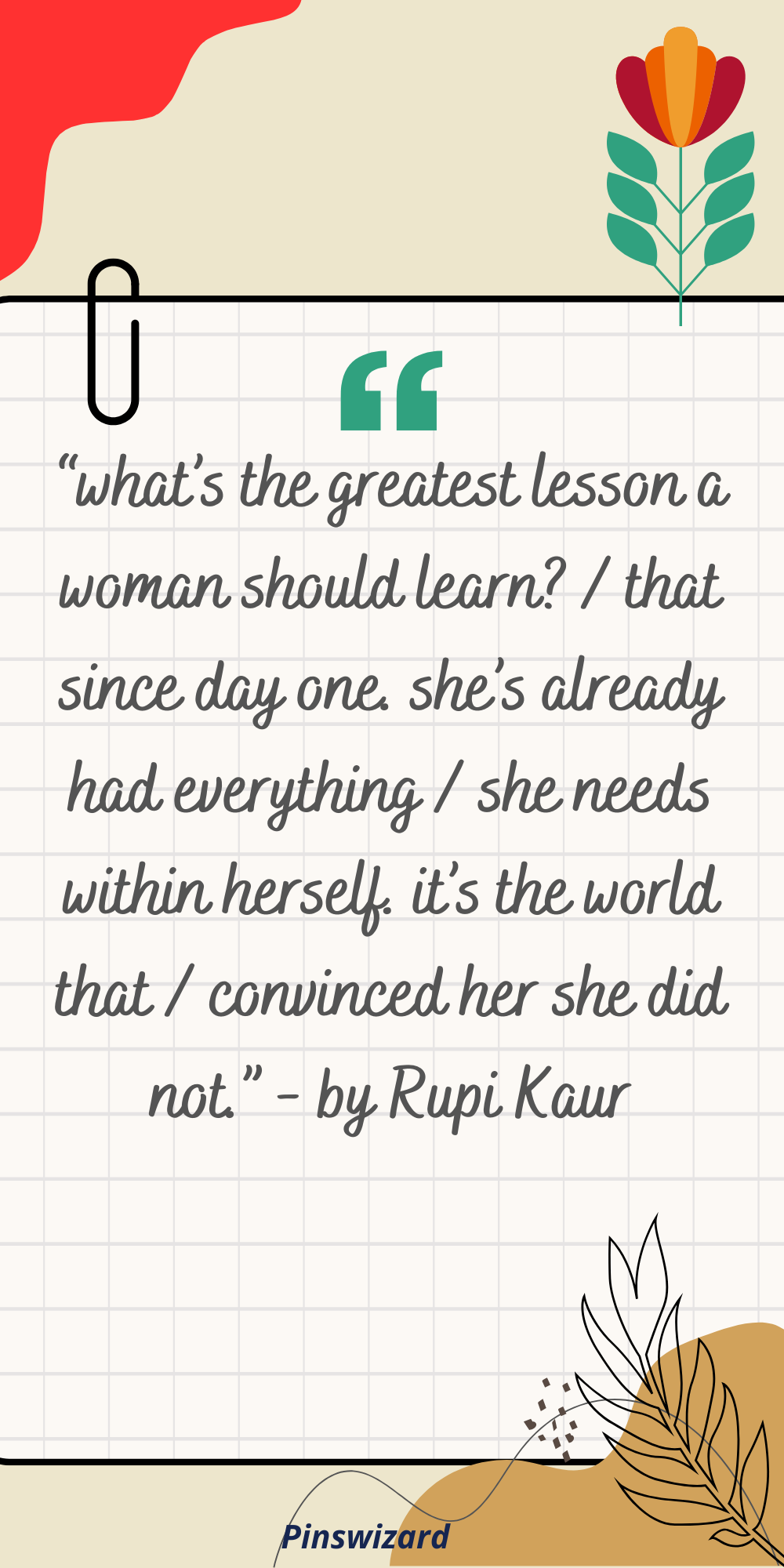 “what’s the greatest lesson a woman should learn? / that since day one. she’s already had everything / she needs within herself. it’s the world that / convinced her she did not.” - by Rupi Kaur