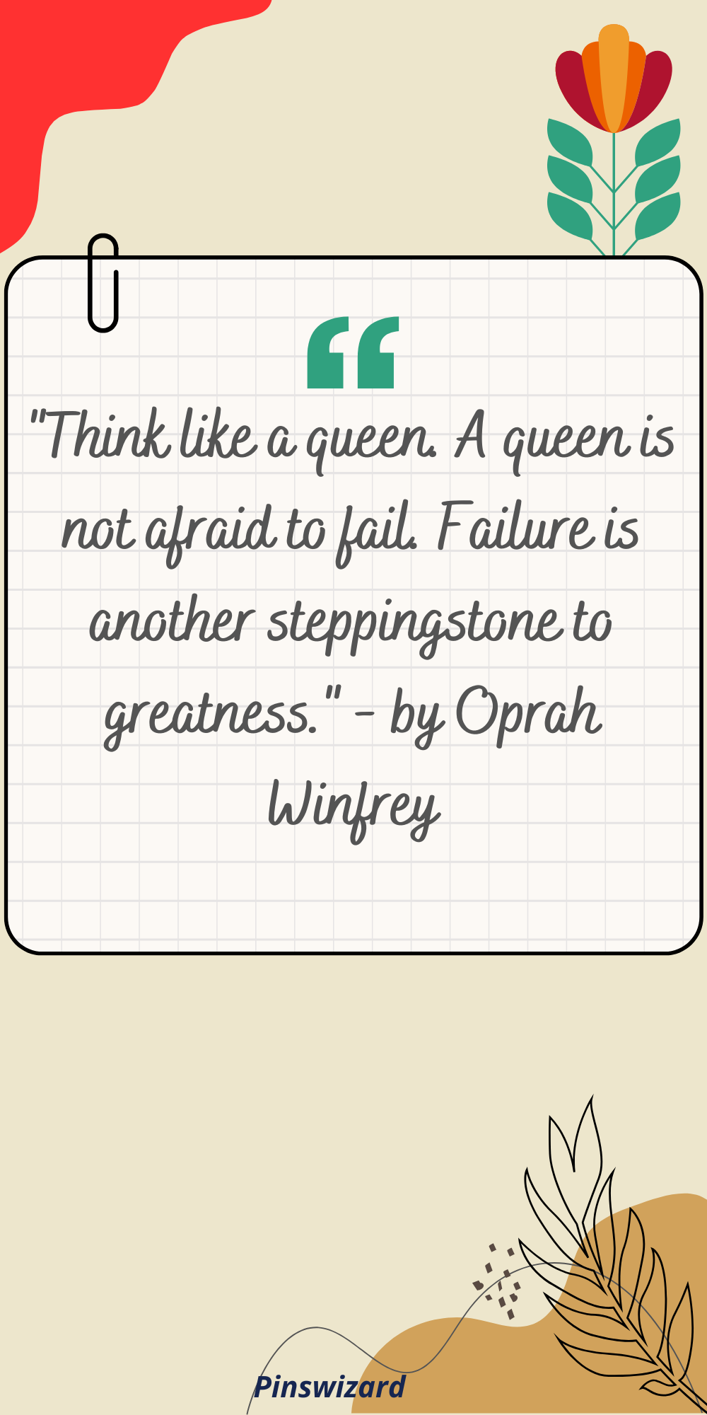 "Think like a queen. A queen is not afraid to fail. Failure is another steppingstone to greatness." - by Oprah Winfrey