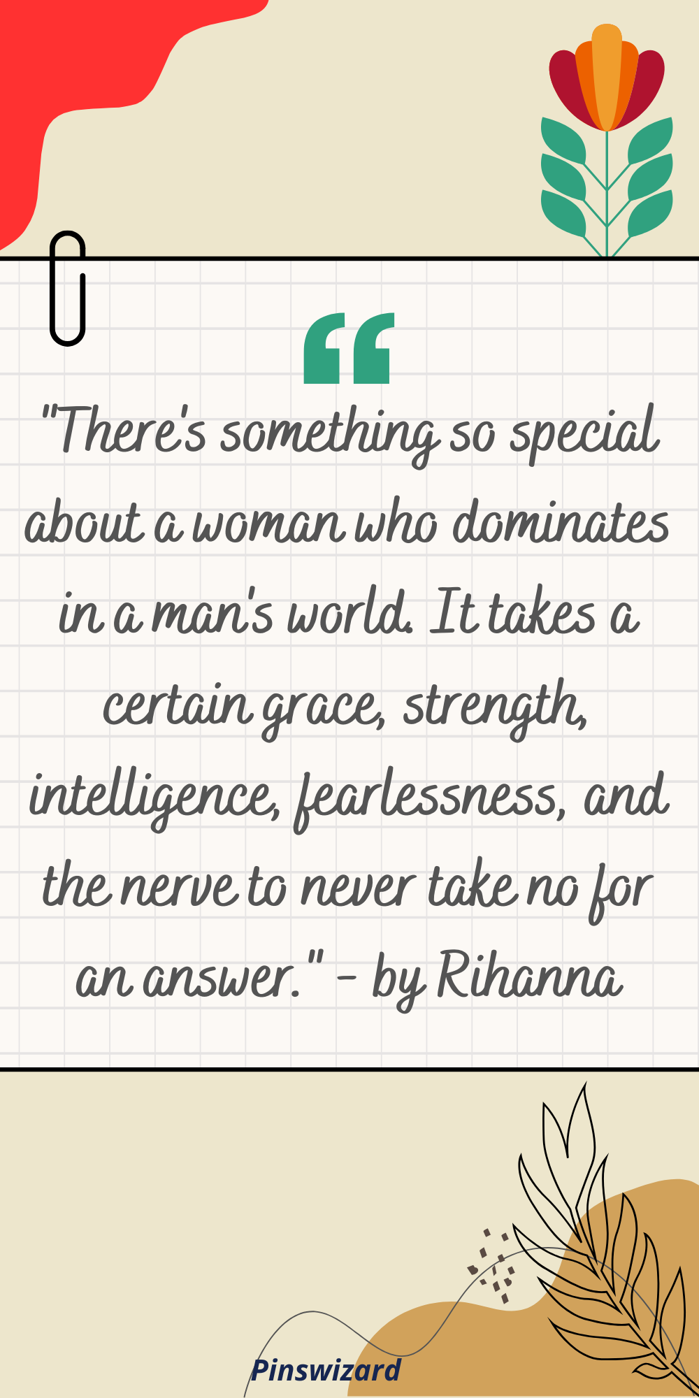 "There's something so special about a woman who dominates in a man's world. It takes a certain grace, strength, intelligence, fearlessness, and the nerve to never take no for an answer." - by Rihanna