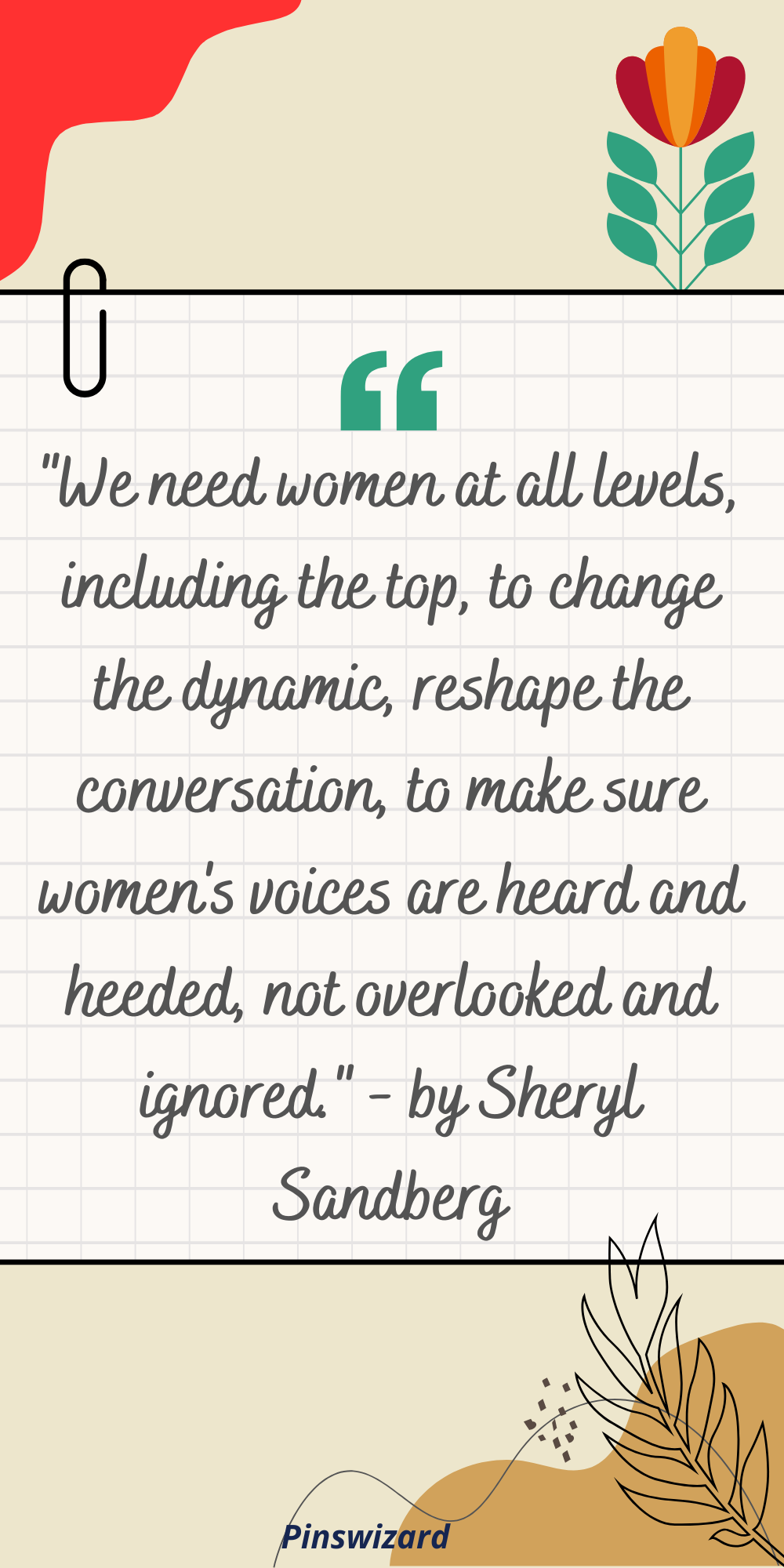 "We need women at all levels, including the top, to change the dynamic, reshape the conversation, to make sure women's voices are heard and heeded, not overlooked and ignored." - by Sheryl Sandberg