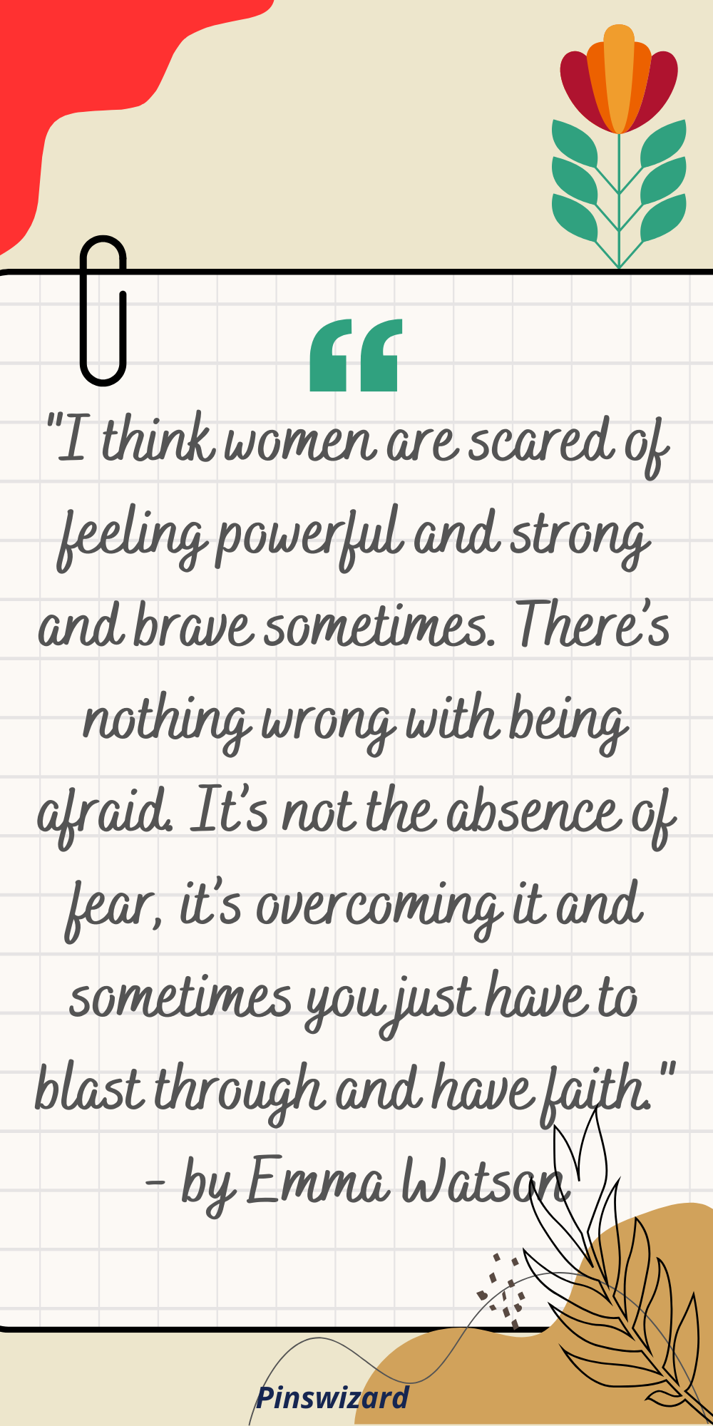 "I think women are scared of feeling powerful and strong and brave sometimes. There’s nothing wrong with being afraid. It’s not the absence of fear, it’s overcoming it and sometimes you just have to blast through and have faith." - by Emma Watson
